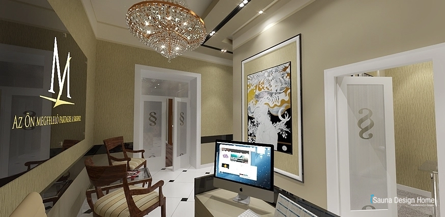 Během navrhování interiéru co vidíte na obrázku jsme uskutečnili jednu exkluzivní zakázku. Na radost našeho klienta jsme použili jedinečné řešení interiérového designu, co udělalo unikátní jeho advokátní kancelář.