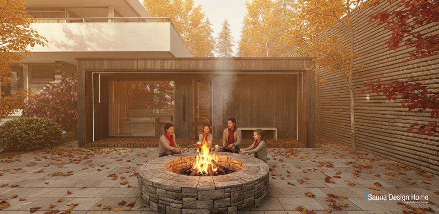 Na jeseň farby prírody a večerné svetlo spomaľujú tempo – sauna sa stáva prechodom medzi dňom a večerom.