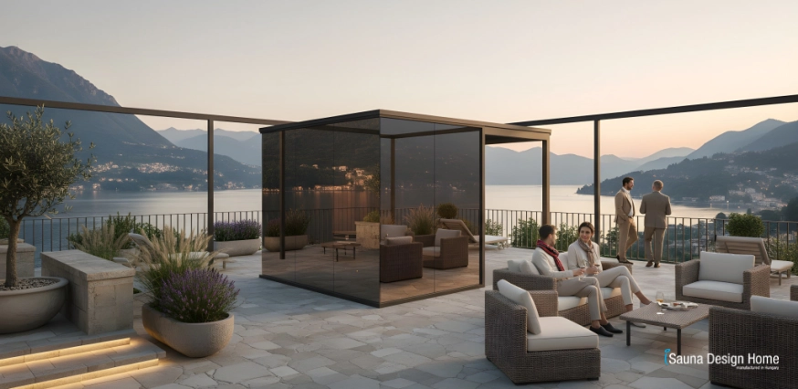 Pri návrhu zohráva dôležitú úlohu integrácia do prostredia, vďaka čomu sa saunový dom takmer prirodzene začlení do záhrady alebo krajiny. Kombinácia panoramatických sklenených plôch a prírodných drevených materiálov vytvára otvorenejší priestorový zážitok, kde sa okolitá krajina stáva súčasťou wellness zážitku počas saunovania.